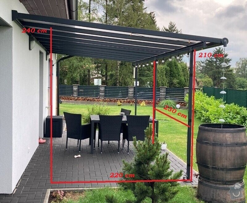 Potřebuji vyřešit částečné zasklení k pergole Palram Sierra 5400 šedá 3 x 5,46 hliníková (montovaná). Líbil by se nám polykarbonát čirý, plný. Pouze jedna boční strana a polovina přední strany (na fotkách u sudu…). Děkuji Pavla.